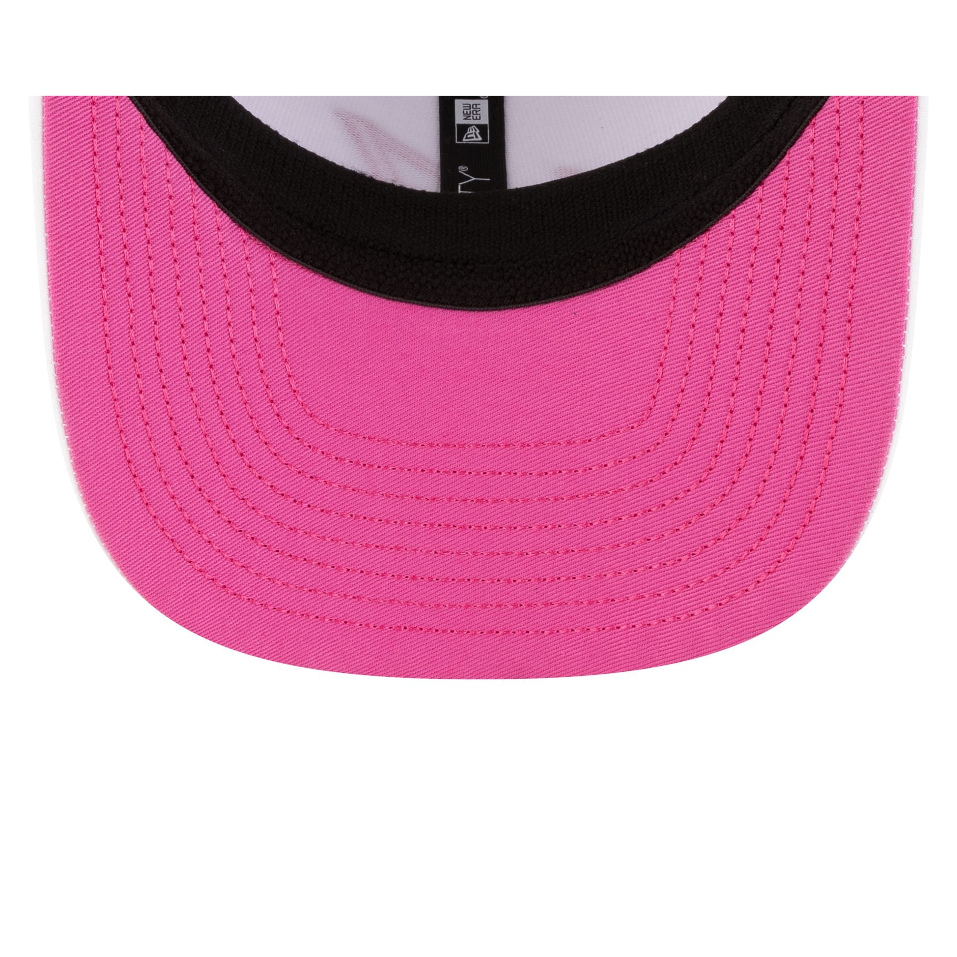 The 2026 Miami Race Special Franco Colapinto BWT Alpine F1 Team 9SEVENTY Stretch-Snap Cap features an embroidered BWT Alpine F1 Team logo at the front panels with the driver's number at the visor and a matching team patch at the right-wear side. Additional details include an adjustable stretch-snap closure at the rear flamingo all over print panels and a pink undervisor.